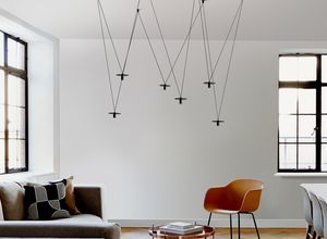 Winner of the Best of Best at Iconic Design Award and awarded the A Design Award Silver Prize, Stoccolma lamp uses an innovative system which allows the light to run on two flexible brass tracks. Inspired by the strings of a musical instrument, Stoccolma is a lamp that works thanks to the tension of two elastic and metal cables that support and bring current to a central light source. -