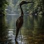 AddRecycled Metal Sculpture Heron Straight Neck...