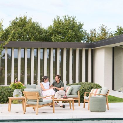 Discover the Lynn collection, a refined selection crafted for the ultimate outdoor comfort. Made from durable teak wood and featuring a modern aesthetic, Lynn brings luxury and elegance to your terrace or garden. With its beautiful texture and warm, natural appeal, each piece creates an inviting, timeless atmosphere.