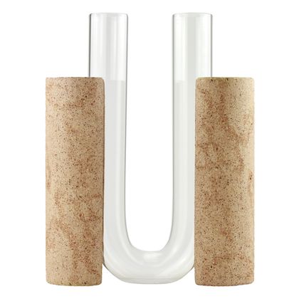 Cochlea dello Sviluppo is part of the Cochlea Collection, inspired by the gradual growth and structural adaptation of land snails. The piece explores development as a phase of expansion and support, expressed through a more open sculptural composition. Each vase is composed of three separate elements assembled without glue or permanent fixings: two in COKI’s natural composite stone, handmade from Italian mineral fragments, and one in curved, flame-worked borosilicate glass shaped without molds. The elements rest together, suggesting growth through balance and structural awareness.