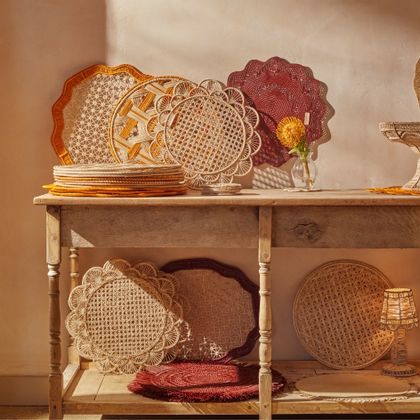 Our collection of placemats and chargers combines artisanal craftsmanship with strong visual impact for retail and hospitality environments. Handwoven from natural fibres, each piece brings texture, structure and warmth to the table. Designed to layer effortlessly across styles, the range offers versatile colourways suited to both contemporary and classic settings.