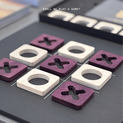 Surprise and be surprised with a magnificent object! A perfectly finished aluminum gaming board in matte black and a set of gaming pieces perfectly crafted from the finest woods in the world. We started with one of the world's most iconic strategy games, Tic Tac Toe, and now we can't wait to expand the collection to include chess, checkers and more. We love to design and create products that bring joy to people, elegance to their spaces, mental training and well being. Dimensions: 29x29 cm | Game board in matte black anodized aluminium.