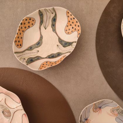 This limited series of hand-painted porcelain transforms the table into a canvas of organic energy. Moving away from rigid patterns, these platters capture the raw, untamed spirit of nature. They are not just serving vessels; they are moments of growth frozen in high-fire porcelain, perfect for elevating a festive Spring brunch or an intimate tea ritual. Viewing the ceramic surface as a living entity, our artisan finds inspiration in the wildness of botany and insects, and each brushstroke is impulsive yet deliberate, capturing the very pulse of nature.