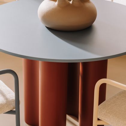 The BULB collection is a family of minimalist tables designed for everyday use and timeless interiors. It includes two dining tables and a coffee table, all united by a strong, sculptural form and a clear focus on functionality. The round tabletop is the heart of the design and can be freely customized in a wide range of laminated board colors, allowing each piece to be perfectly matched to its surroundings. The tables are complemented by a stable steel base available in several color options, combining durability with a modern, expressive look.
