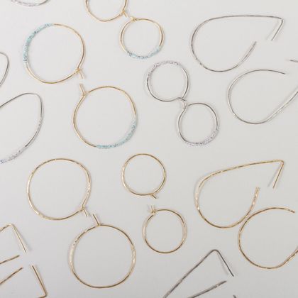 Light is a collection of small irregular geometric shapes that evoke circles, triangles, and squares—essential forms reinterpreted through the imperfections of handcraft. Each piece is hand-hammered, leaving a subtle texture that reveals its artisanal process. Some pieces incorporate hand-applied CÂPÂ paint. These are thin, subtle, and lightweight jewels, designed for everyday wear and to celebrate the simplicity of form and the honesty of the material.