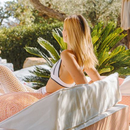 Foam foam double bed - geometric patterns in white and orange