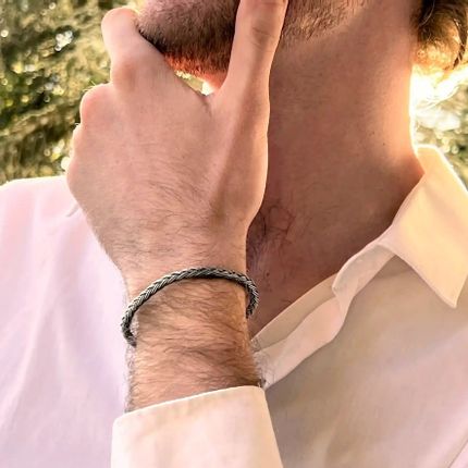 ROUND BRAID BRACELET - SILVER AND OXIDIZED SILVER - HANDMADE - MEN&WOMEN