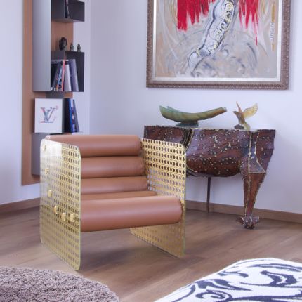 MW02\" Cannage OR\” armchair - Foam and brown leather seat - Handmade