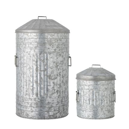 Delina Bucket, Grey, Galvanized Metal Set of 2