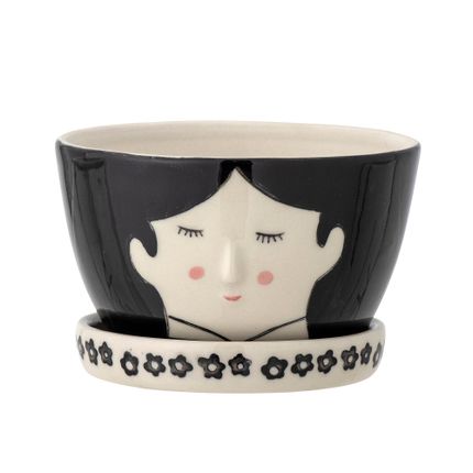 Carolin Flowerpot w/Saucer, Black, Stoneware