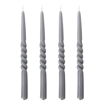 Twist Candle, Grey, Parafin Pack of 4