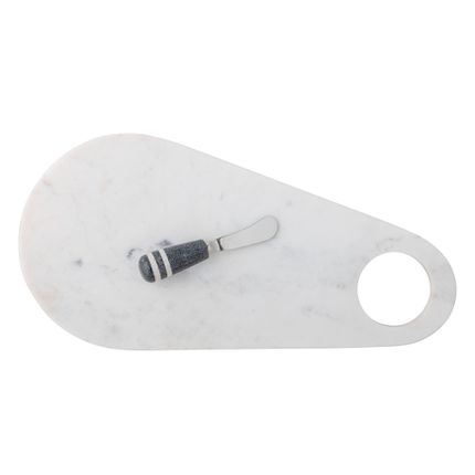 Abrielle Serving Board w/Knife, White, Marble Set of 2