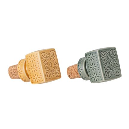Rani Wine Stopper, Yellow, Stoneware Set of 2
