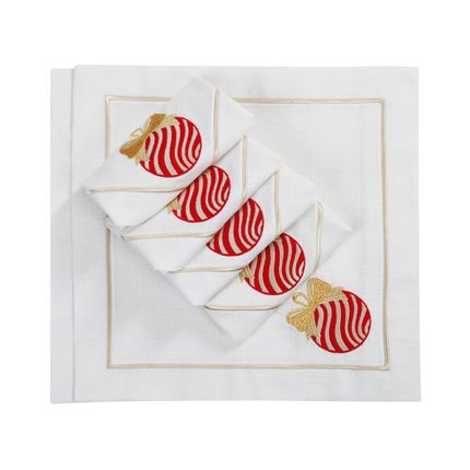 Embroidered Napkins Christmas Bauble Panama - 6 pieces