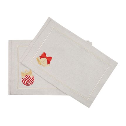 Embroidered Placemats Jingle Bells & Christmas Bauble Mirha - 4 pieces