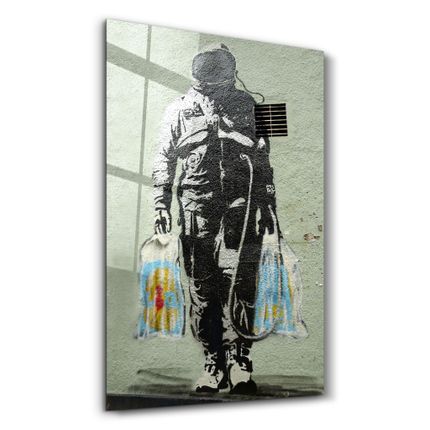 Banksy - Shopper Spaceman | Glass Wall Art 110CMx70CM