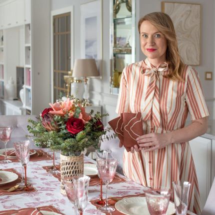 Tablecloth Toile de Jouy Red Forest - 140 cm x 250 cm