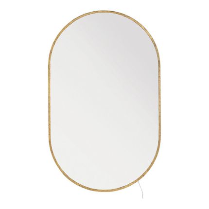VICTORIA oval illuminated mirror in brass-finish metal - H. 104 cm
