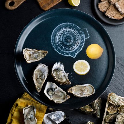 Round wooden serving tray - Trompe-l'oeil lemons 38 cm