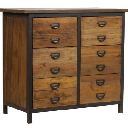 Dakota industrial sideboard in wood and metal, 6 drawers, 89 cm
