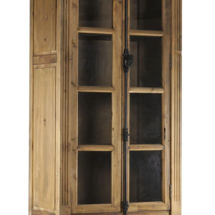 Industrial display cabinet in recycled wood and metal, 240 cm, 4 shelves and 2 drawers