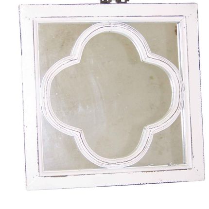 Clover-shaped mirror in recycled wood, distressed white finish, 40 cm