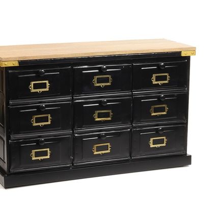 Industrial sideboard in black metal and mango wood, 9 drawers