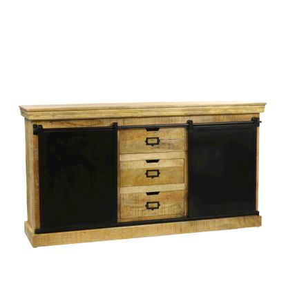 Industrial sideboard in wood and iron, sliding door, 3 drawers, 2 shelves