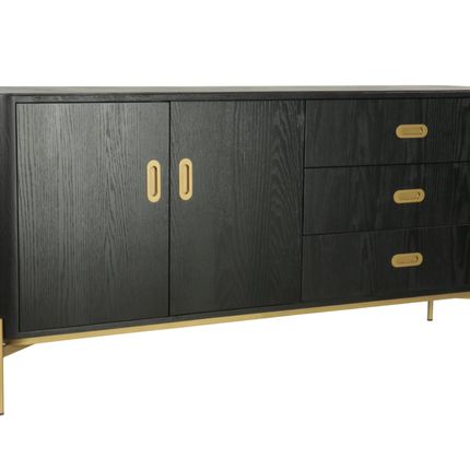 Long black and gold oak sideboard, 3 drawers, 180x45 cm, modern style