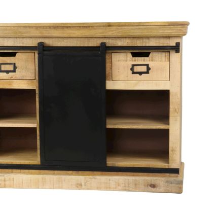Industrial sideboard in wood and iron, sliding door, 3 drawers, 2 shelves