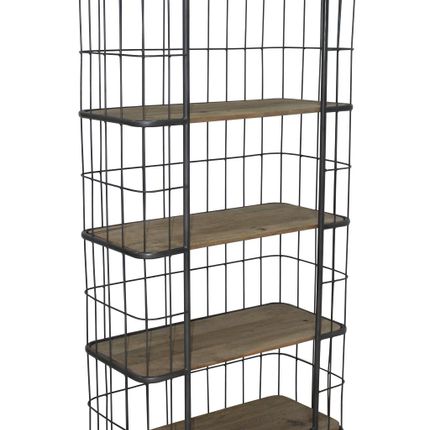 Industrial shelf in mango wood and metal, 5 shelves, with wheels