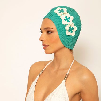 KORES ACCESSORIES Turqoise Vintage 3 Flowers Swim Cap