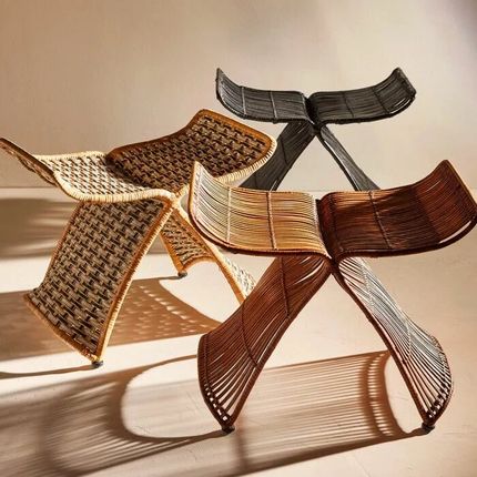 Rattan and wrought iron stool BUTTERFLY