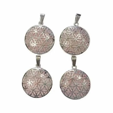 Rose Quartz Flower of Life Metal Pendant A 25mm x4