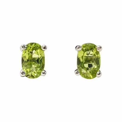 Solitaire Earrings in White Copper Faceted Peridot AA stud