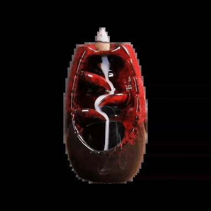 Red Ceramic Backflow Incense Holder Cascade of Leaves 13cm