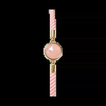 Faceted Round Rose Quartz Brass Rope Bracelet 12mm