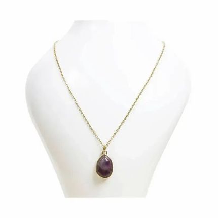 Golden Stainless Steel Necklace with Amethyst Geometric Pendant AA 15mm