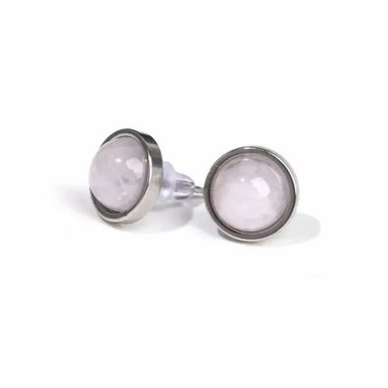 Round Stainless Steel Rose Quartz Stud Earrings 10mm