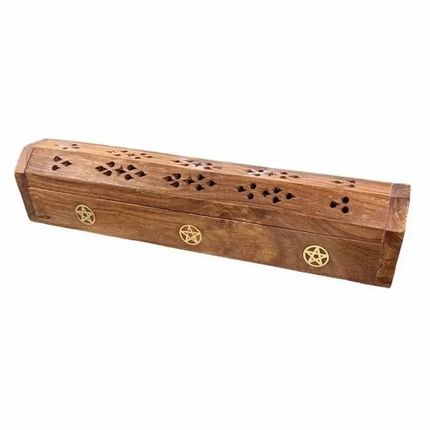 Incense Holder Sheesham Wood Box Pentacle 30cm x2