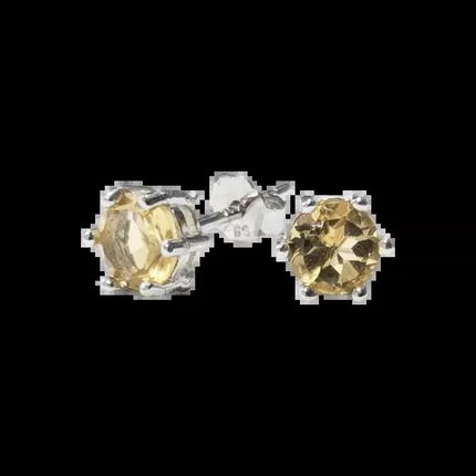 Round Solitaire Earrings 925 Silver Faceted Natural Citrine AA 5x5mm