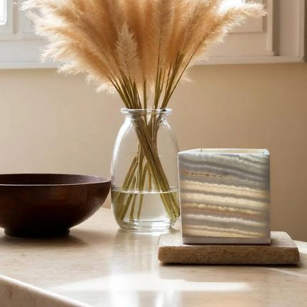 Zana Candle Holder – Alabaster Stone - handcrafted, Set of 2 - Square