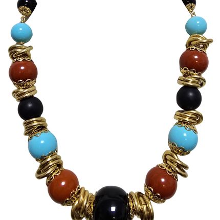 Collier plaqué or avec turquoise noire et corail