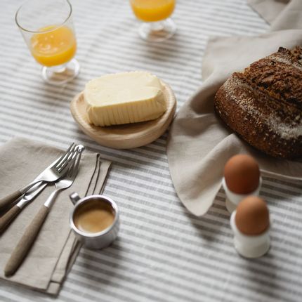 Grey Stripes Linen Tablecloth 140 x 260 cm