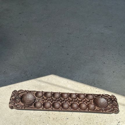 Carved wood, large old traditional wooden congklak (Indonesian mancala)