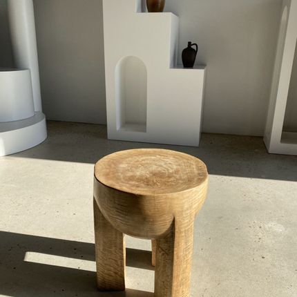 Monoxyl side table in natural color mango wood semi-circle seat