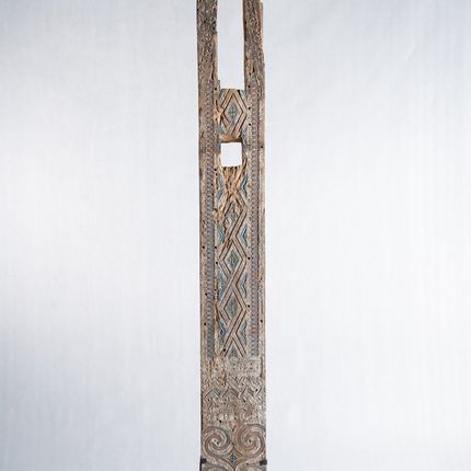 Indonesian construction element in carved wood mounted on a base from the island of Sulawesi (Toraja) (H shape)