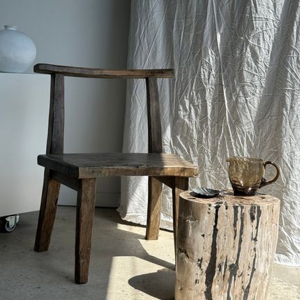Side table in white oval petrified wood with black streaks H:45.5 D:20