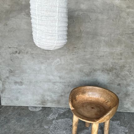 Very large Japanese-style rattan and natural linen pendant light in the shape of a lantern H80 D65
