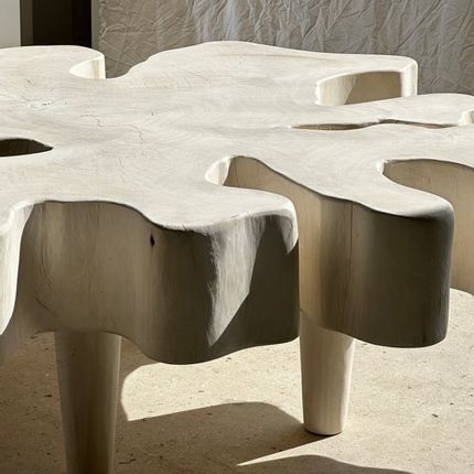 Very large coffee table in bleached mango wood, organic top D: 140cm